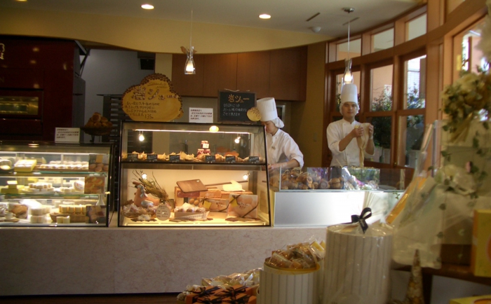 内から洋菓子の飾り付けを見る楽しみ、オーブンから焼き上がる洋菓子の香りなども楽し