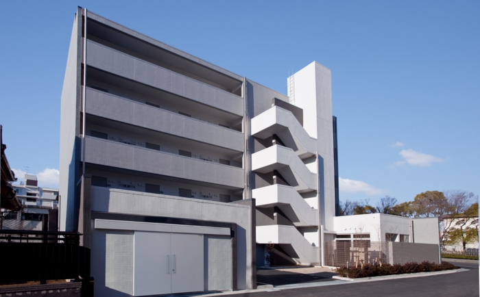 建蔽率・容積率・日影規制等、許容範囲いっぱいに計画したマンションです。敷地内にあるゴミ